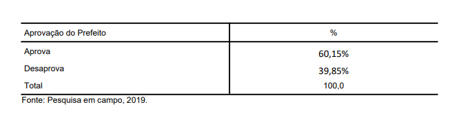A pesquisa do instituto Seta também fez a avaliação administrativa da população quanto à gestão de Paulo Emídio, o Paulinho, e nesse quesito a aprovação do prefeito é de 60,15%. Um total de 39,85% disseram que desaprovam. Não houve indecisos.